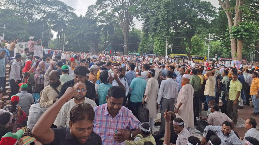 এর আগে ভোর থেকে দেশের বিভিন্ন জেলা ও উপজেলা থেকে সহকারী শিক্ষকরা ঢাকায় এসে সমাবেশস্থলে জড়ো হন।